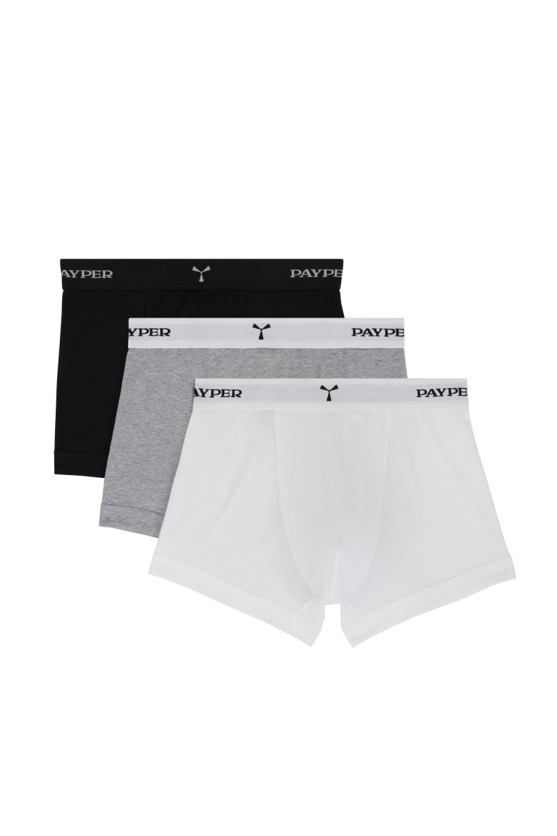 Bóxer de hombre, de pierna corta, con cintura elástica personalizada, confeccionado en algodón elástico. Se vende en paquetes de tres unidades, en combinaciones de distintos colores. Unidad mínima de venta: 3 unidades (1 paquete).